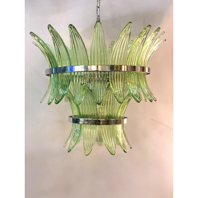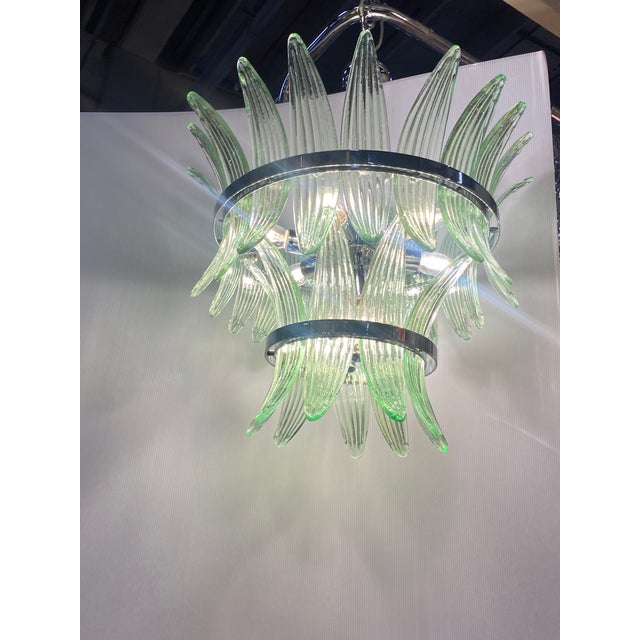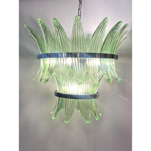 “Palmette” Murano Glass elements are worked with SLAB “a Piastra”, a traditional venetian working . Chromed belt give it a new design by Simoeng.