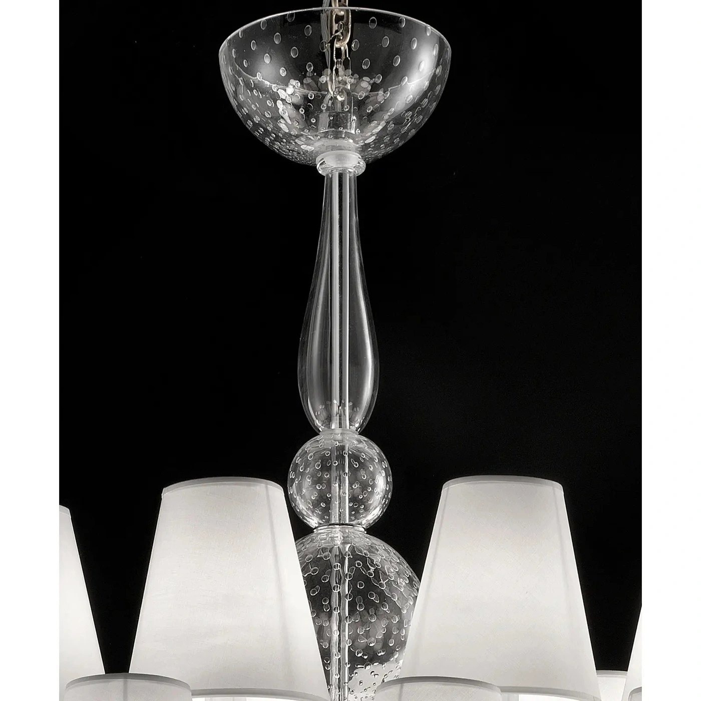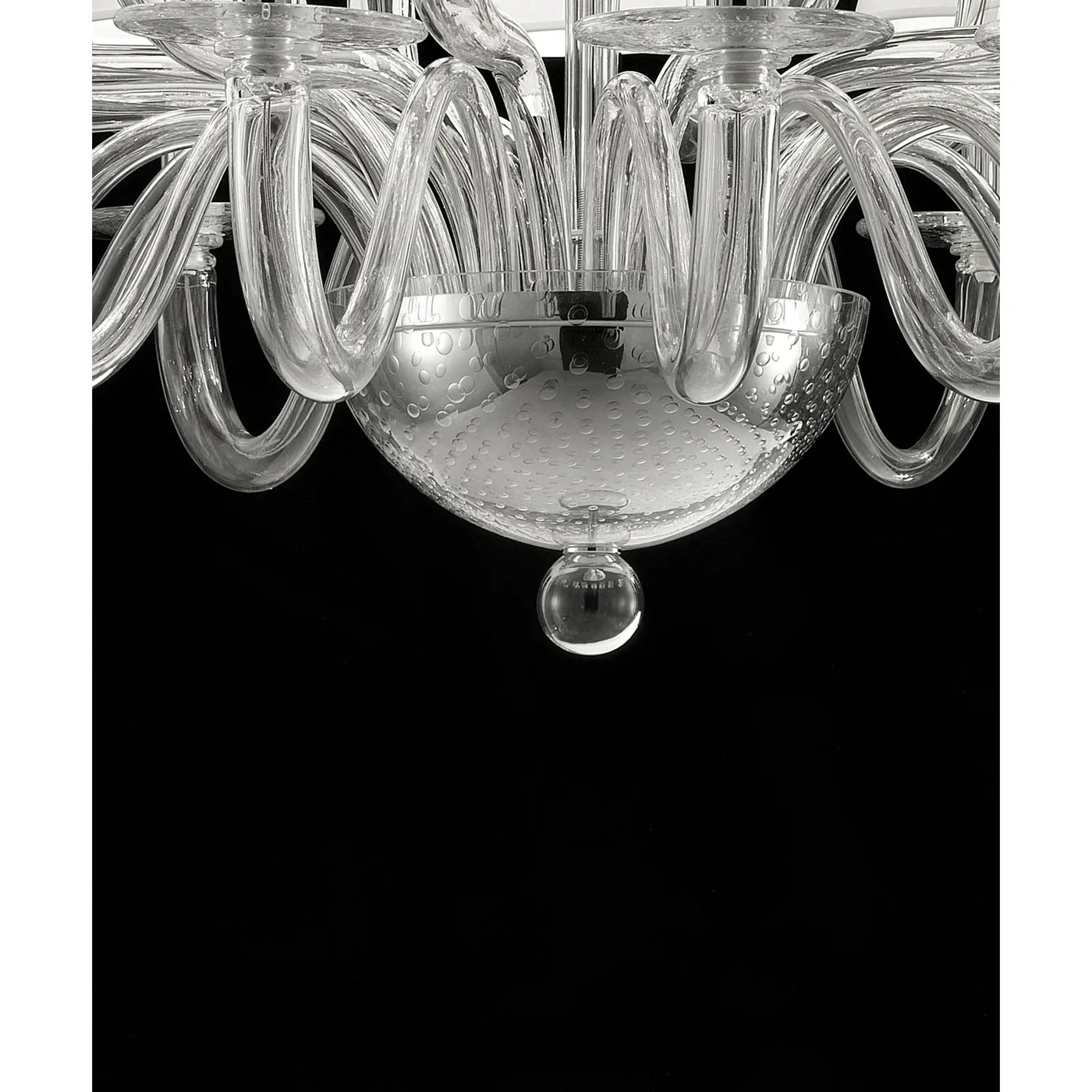 For classical and modern interiors, a piece of hight italian craftmanship. The cental body is worked full of bubbles inside, a traditional working of blowing Murano glass.