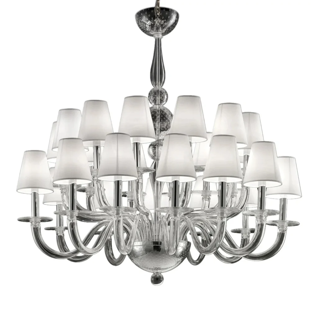 Contemporary luxury italian chandelier in Murano glass.