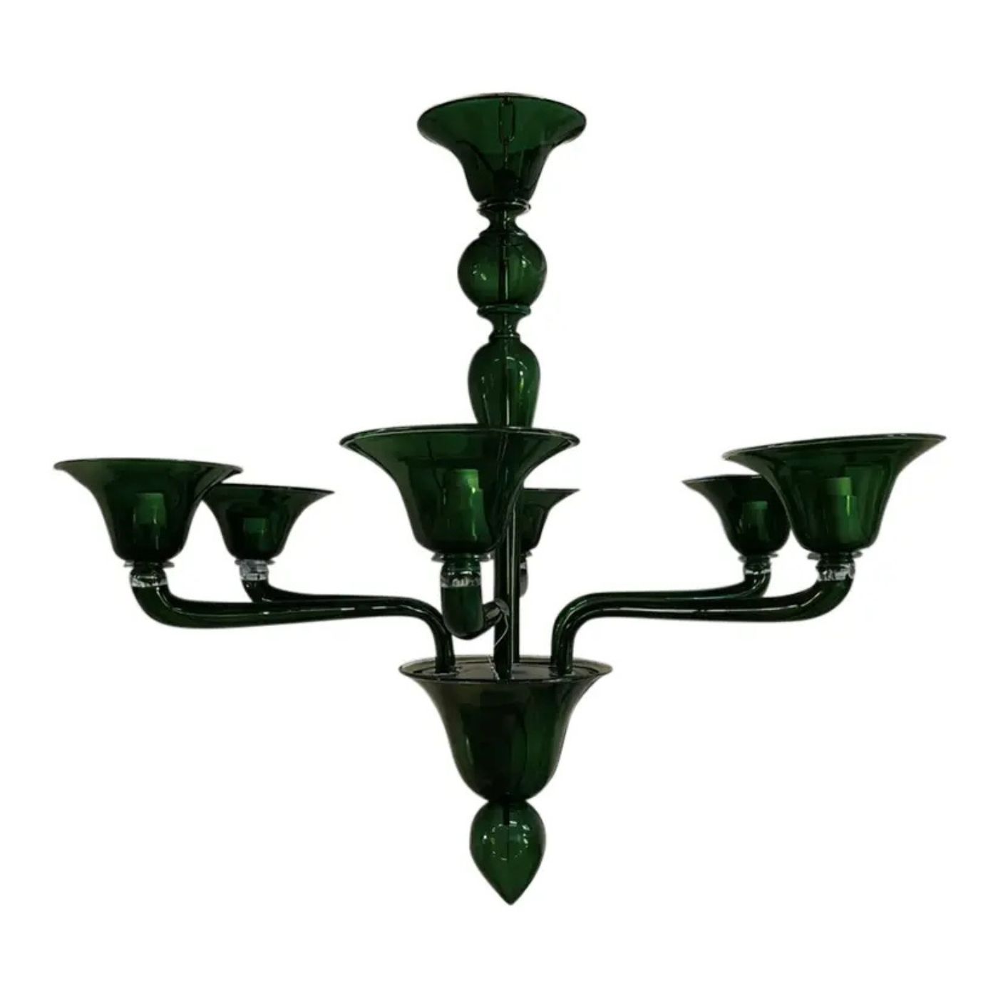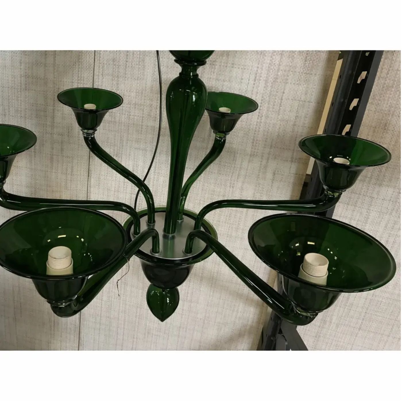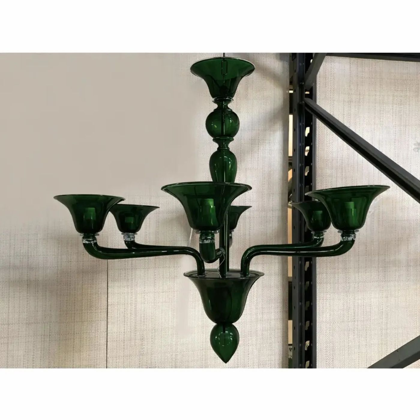 Contemporary Murano glass chandelier in decò style decorated in translucent dark green color which makes it extremely modern and luxurious.