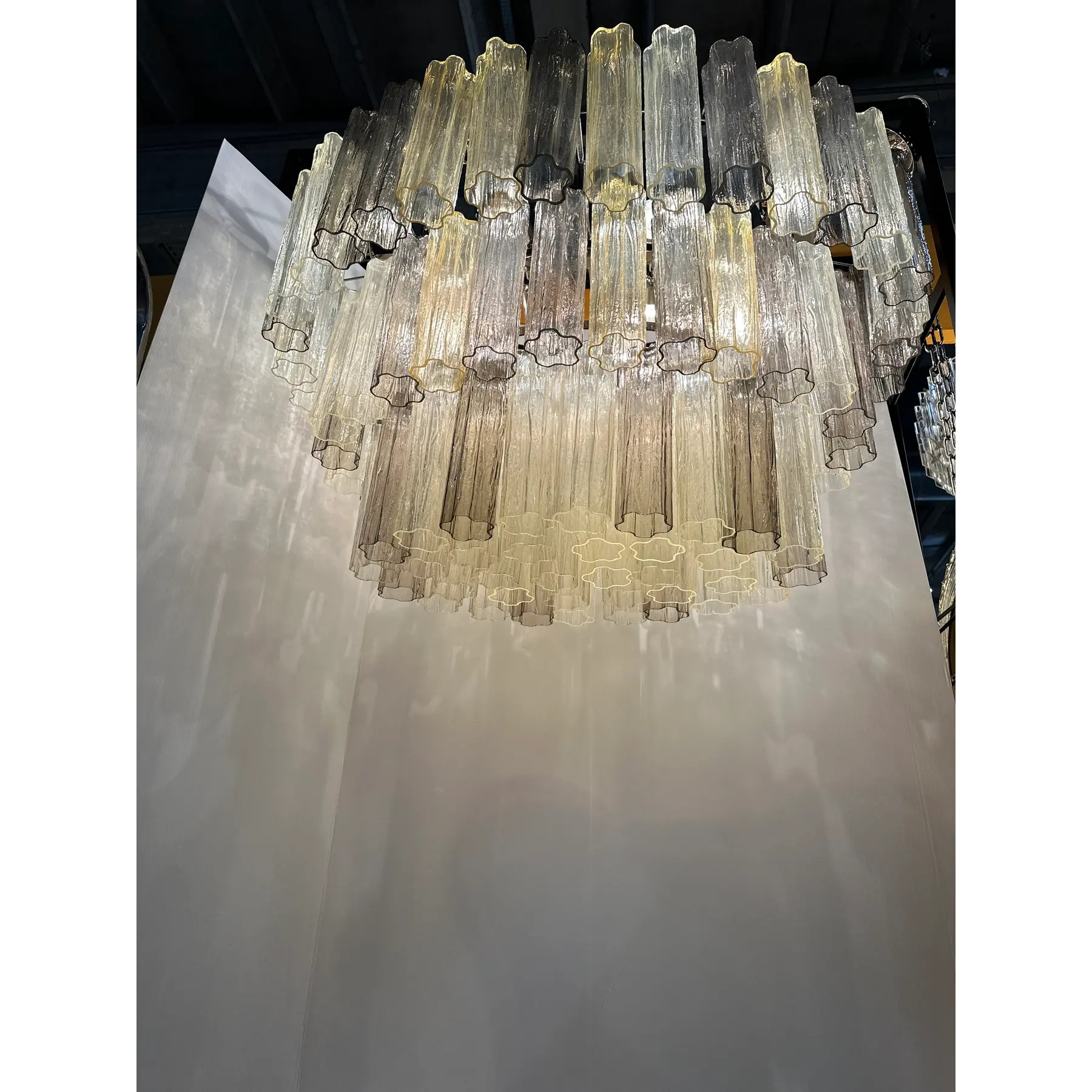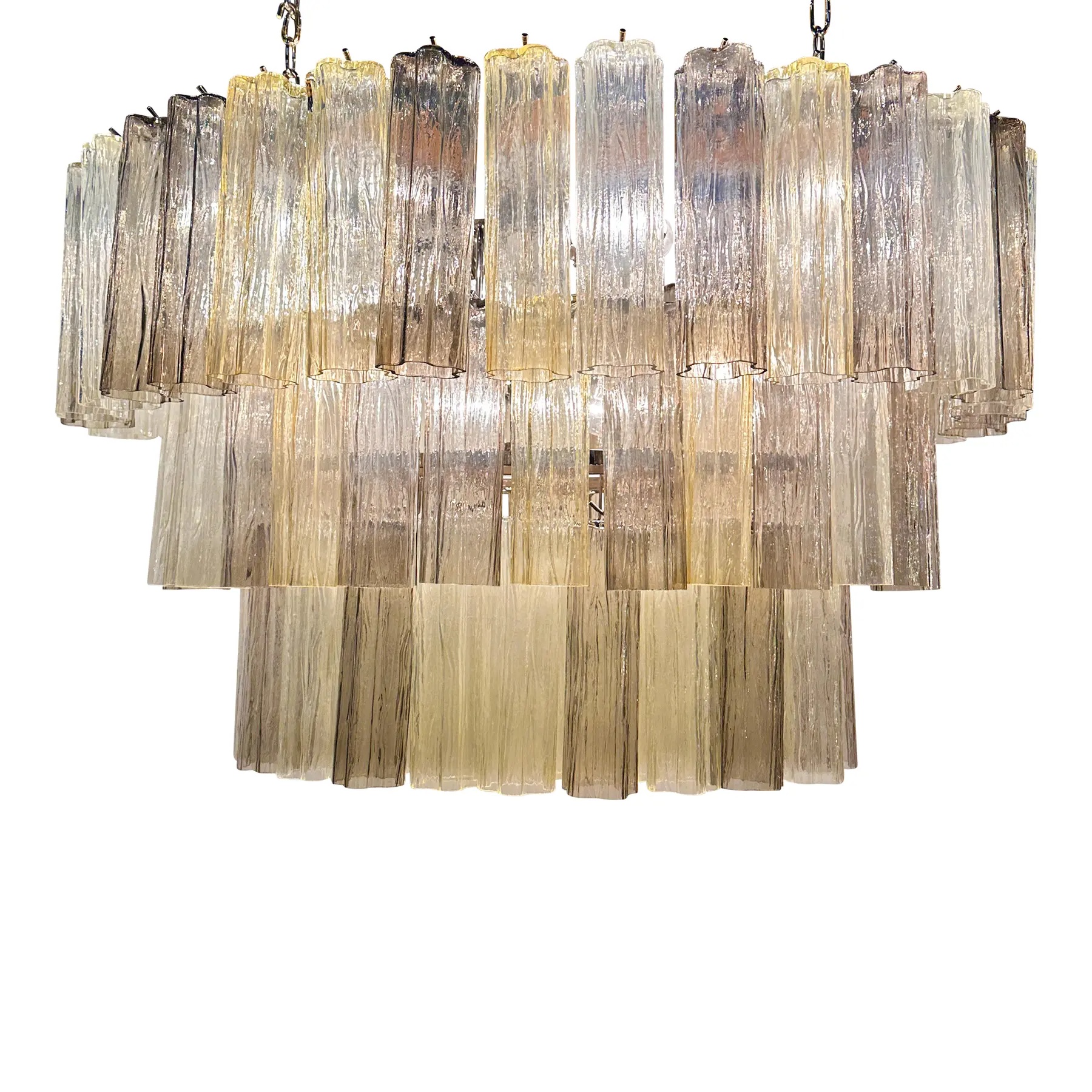 Three levels of Murano glass “tronchi ” in champagne e fumè colors.