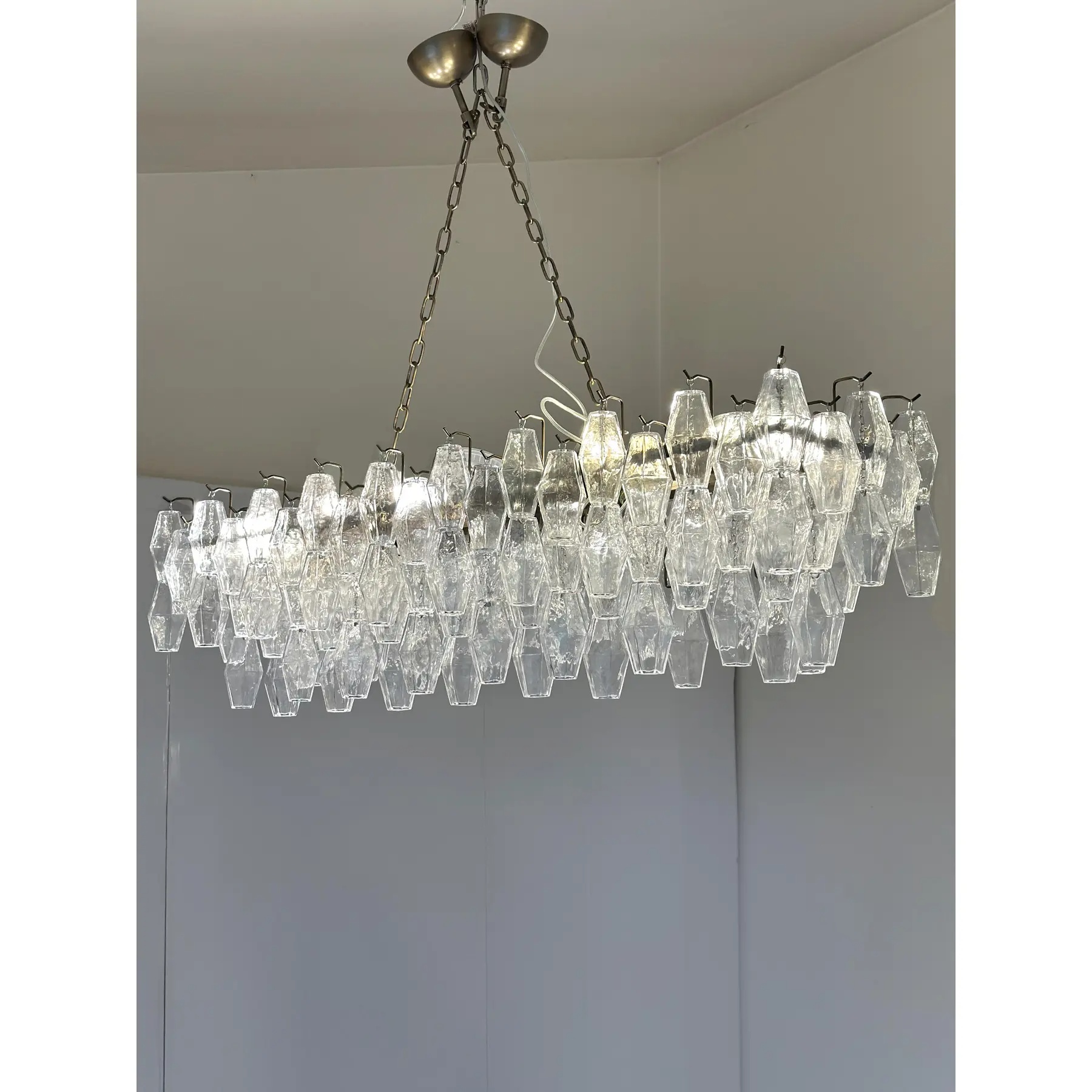 Contemporary Huge rectangular “Poliedro” Murano Glass Chandelier.