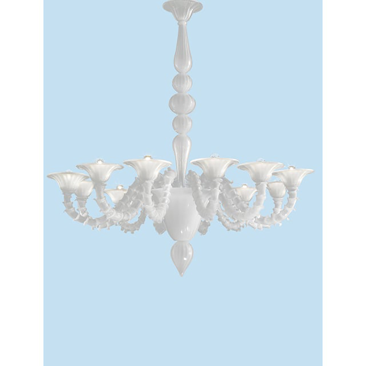 Venetian white “Ca’ Rezzonico” Murano glass chandelier
