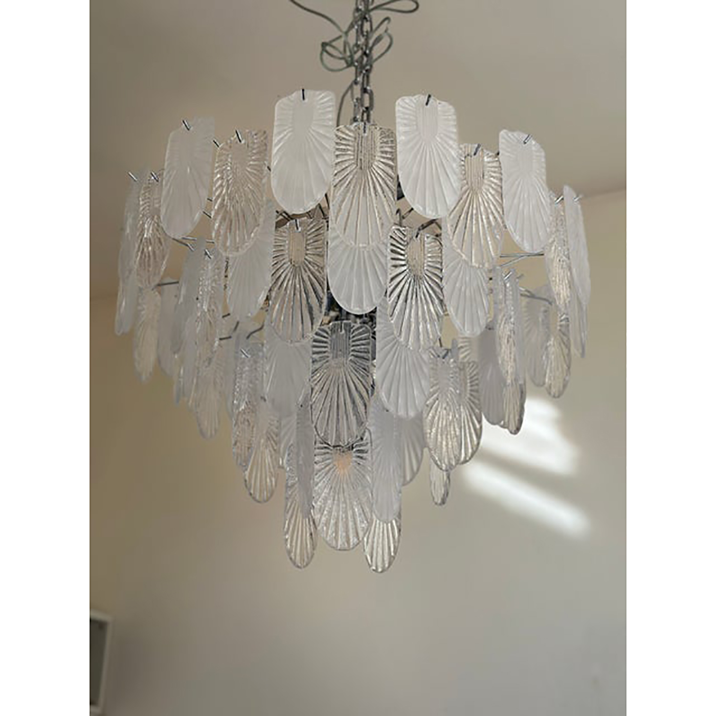 Italian Murano Glass Chandelier Clear and Frosted in decoò Style