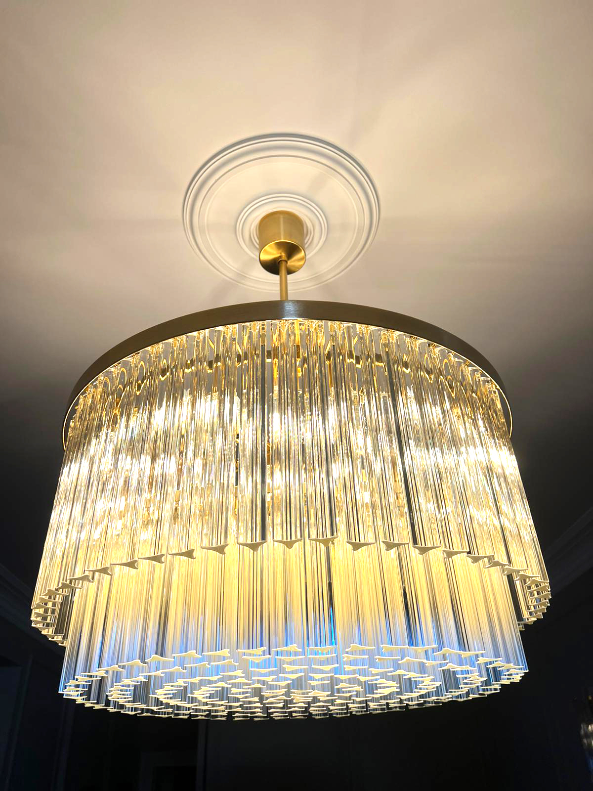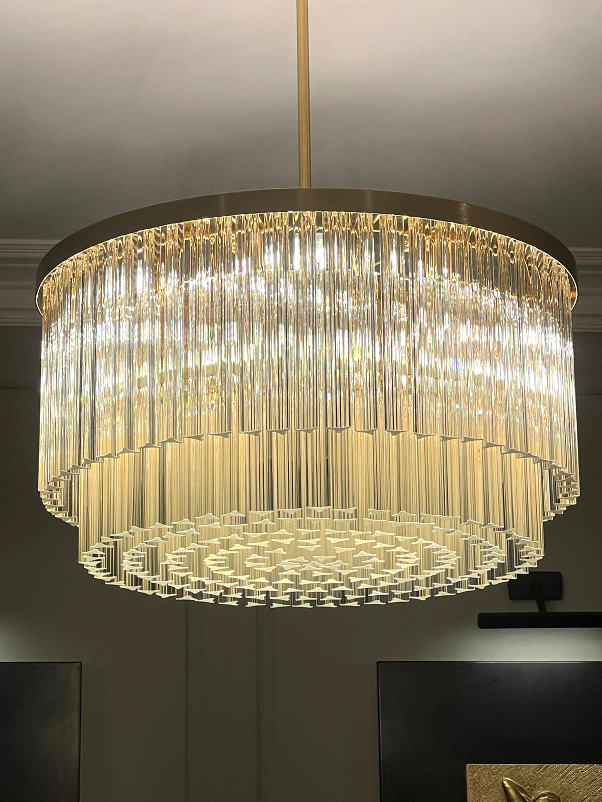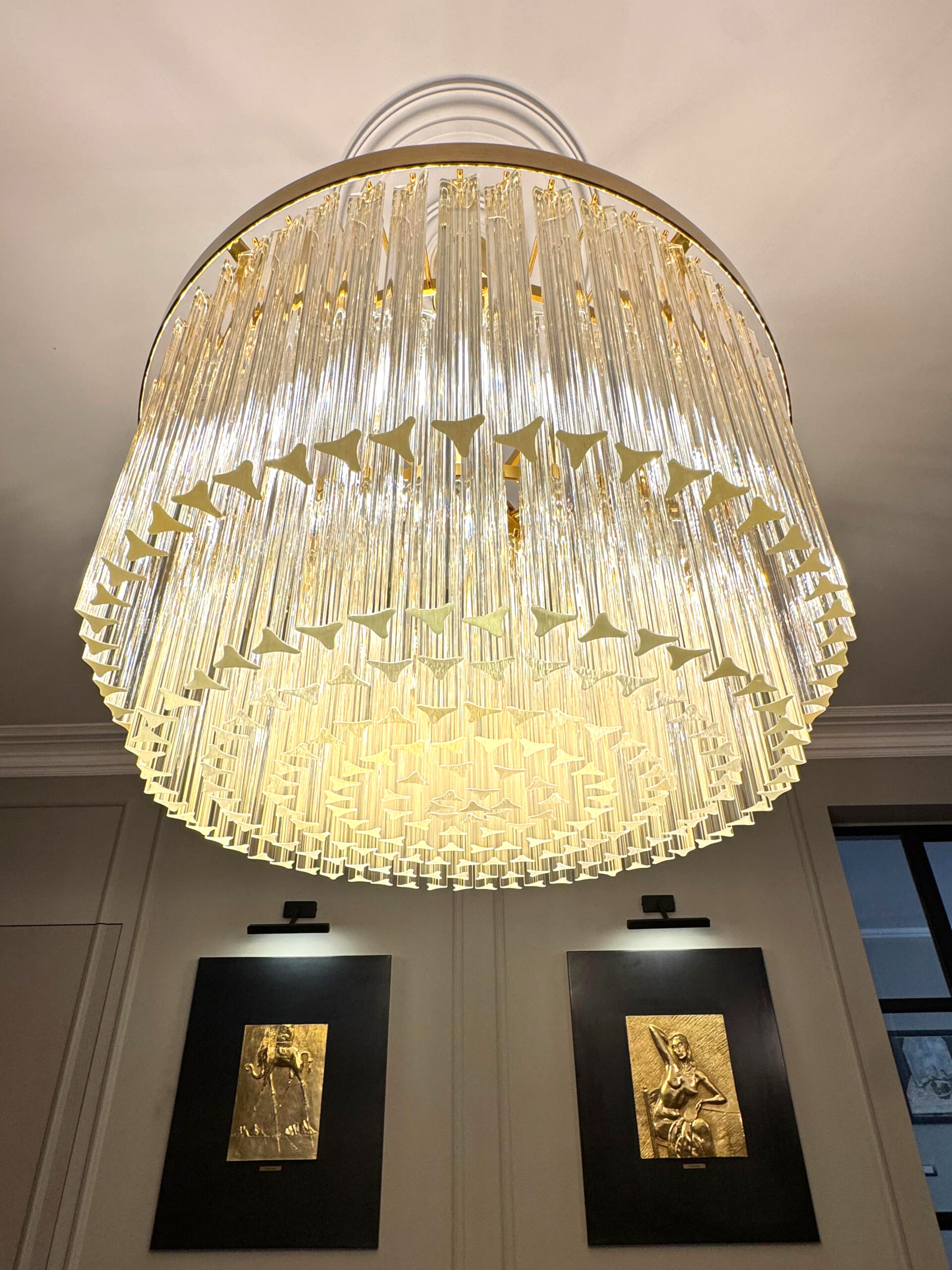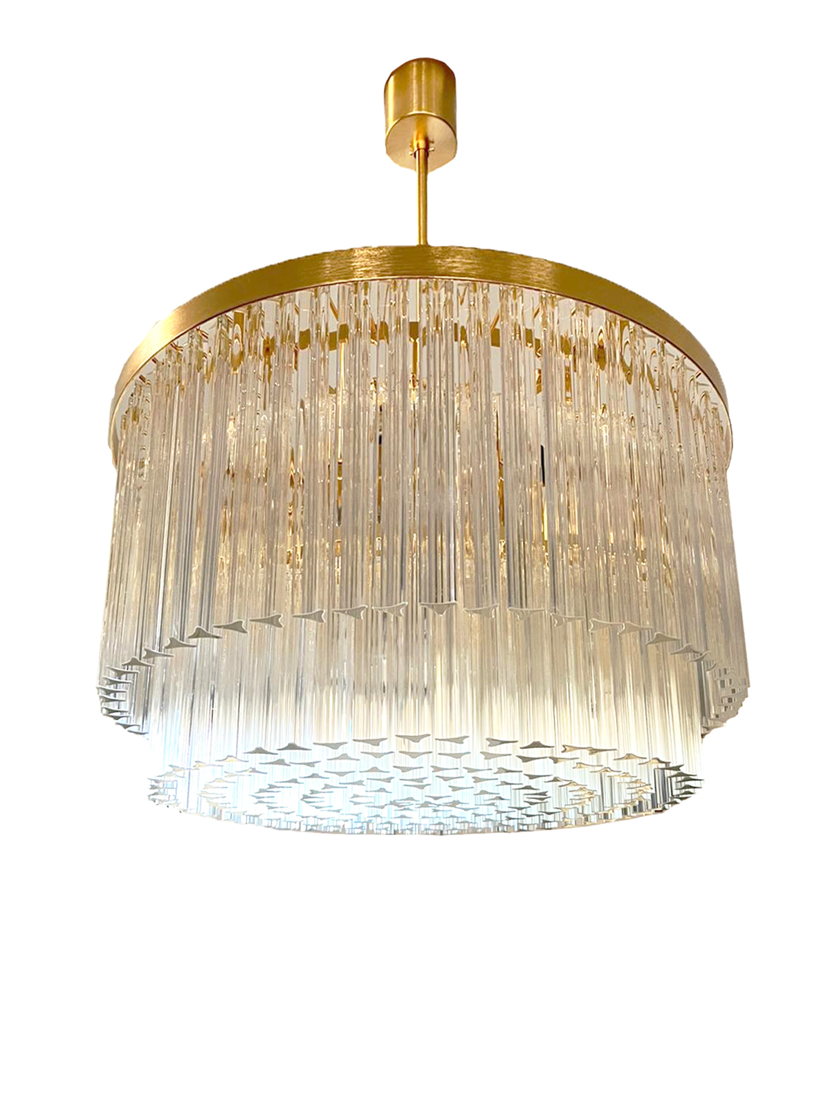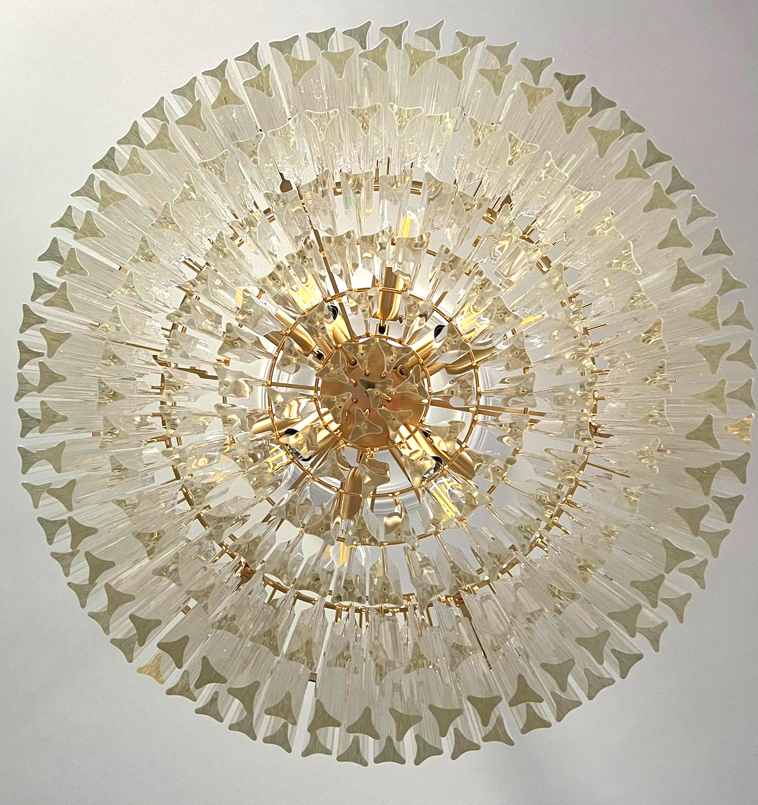 Murano Glass Chandelier With Clear Triedo Glass Italian Pure Art by Simoeng