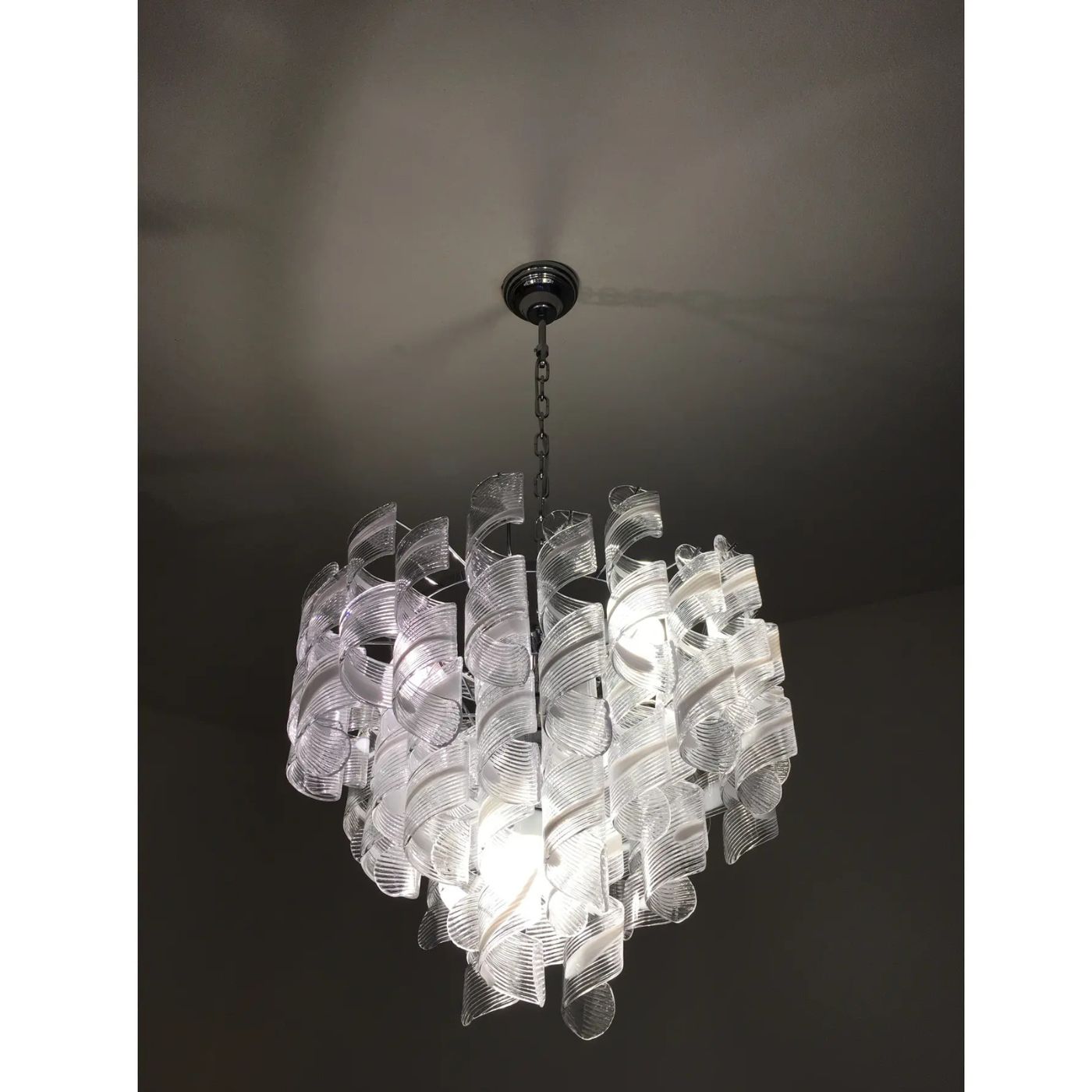Murano Glass Sputnik Chandelier With Swirling Italian Glass clear and white