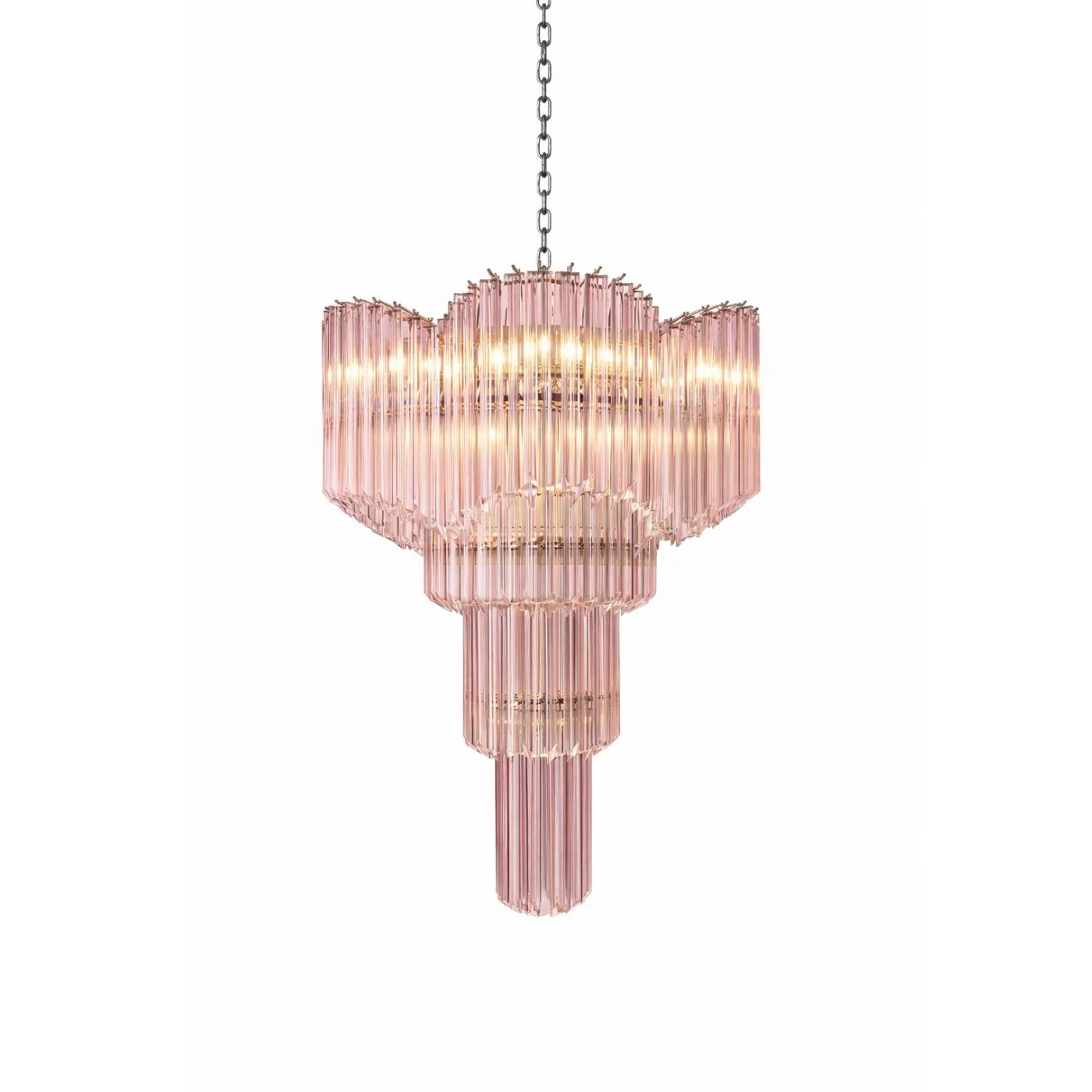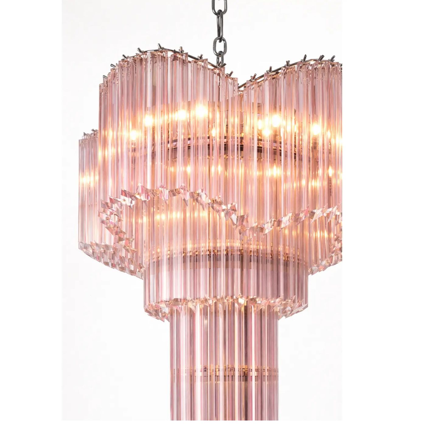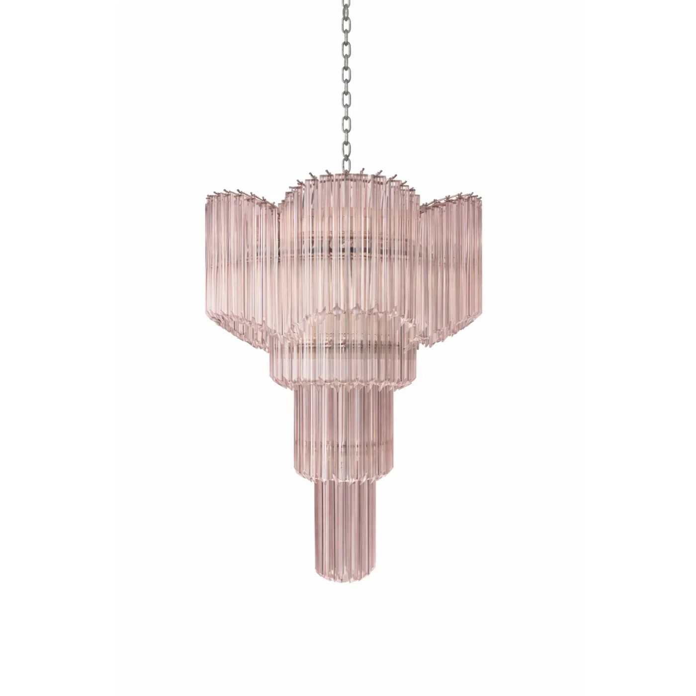 Murano Glass Pink “Quadriedro” Spyral Italian Chandelier in Decò style