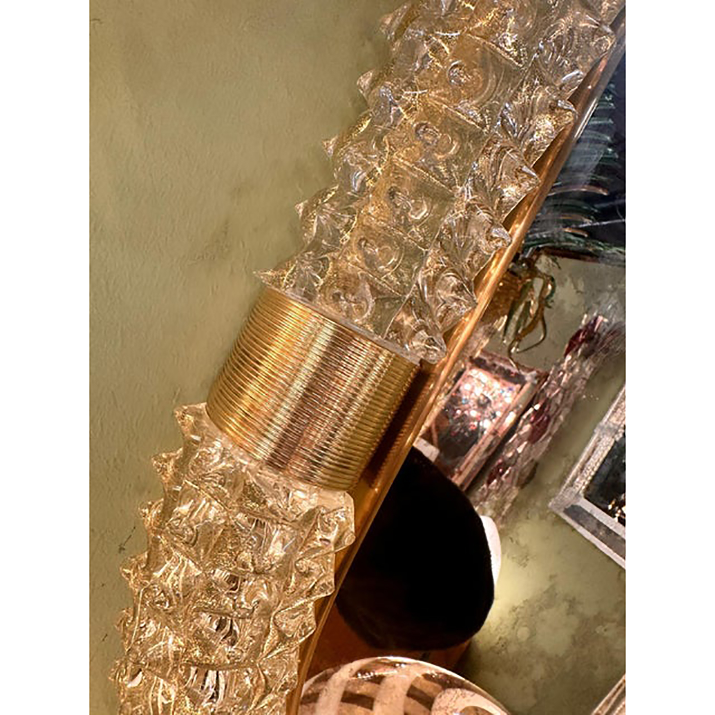 Impressive wall mirror in brass elements with trasparent ando gold leaf inside working in “Rostrato”. a traditional tecnique of Murano Glass.