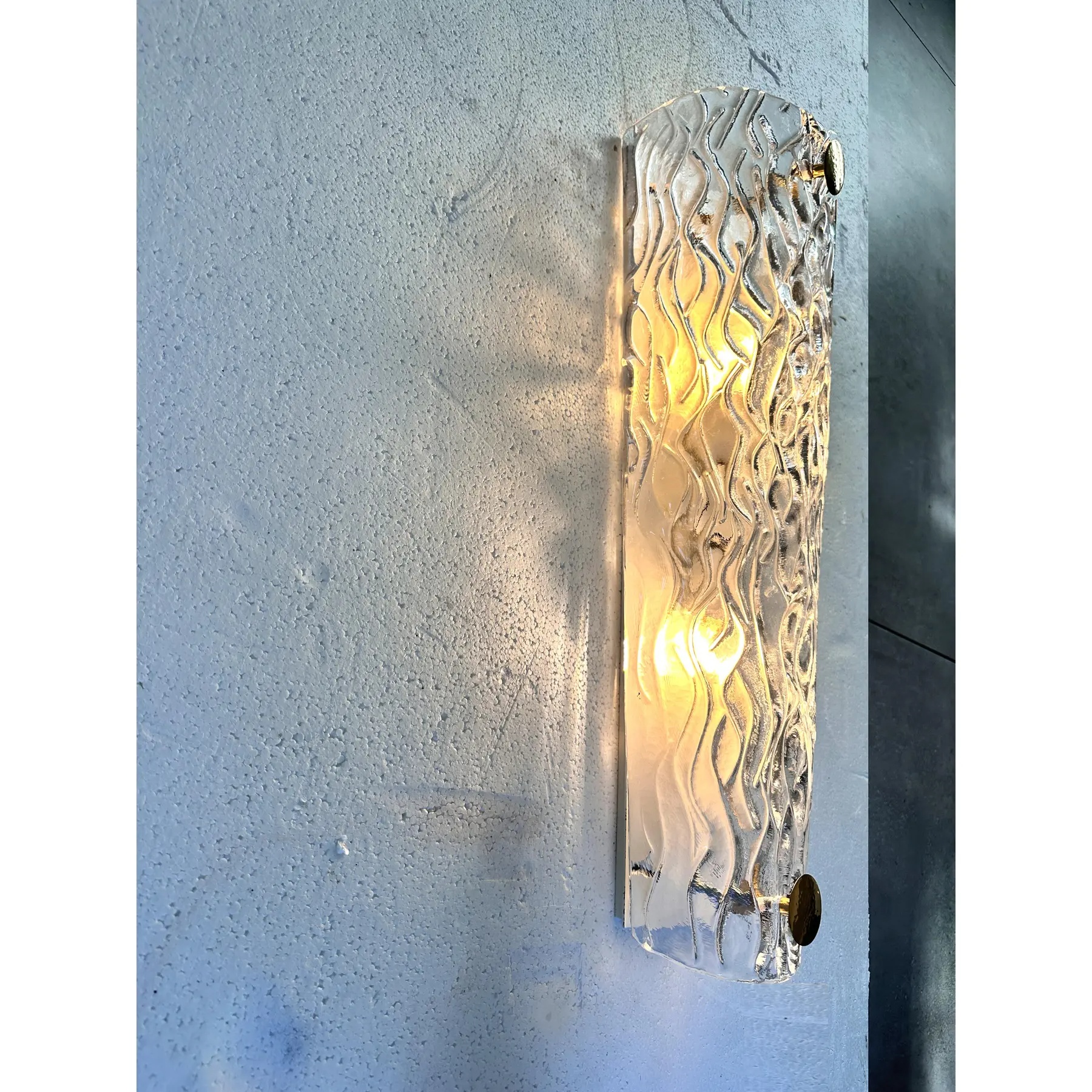 Scenographic wall sconce made in clear graniglia of Murano glass.