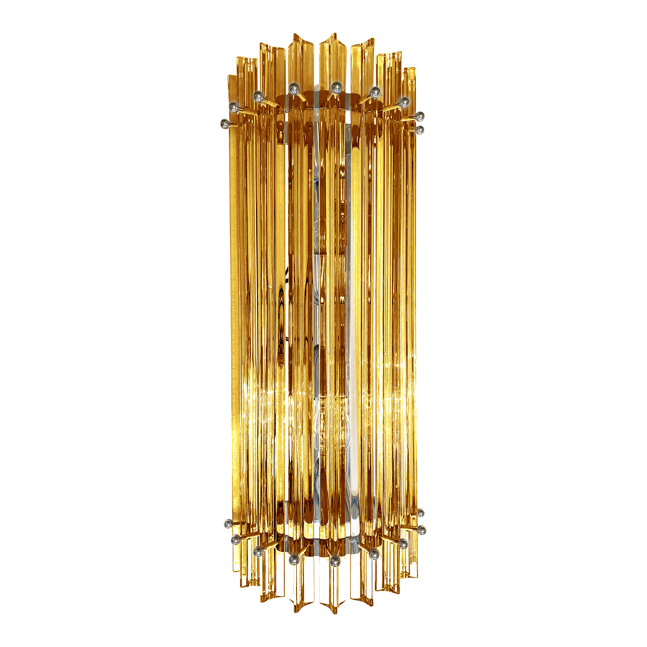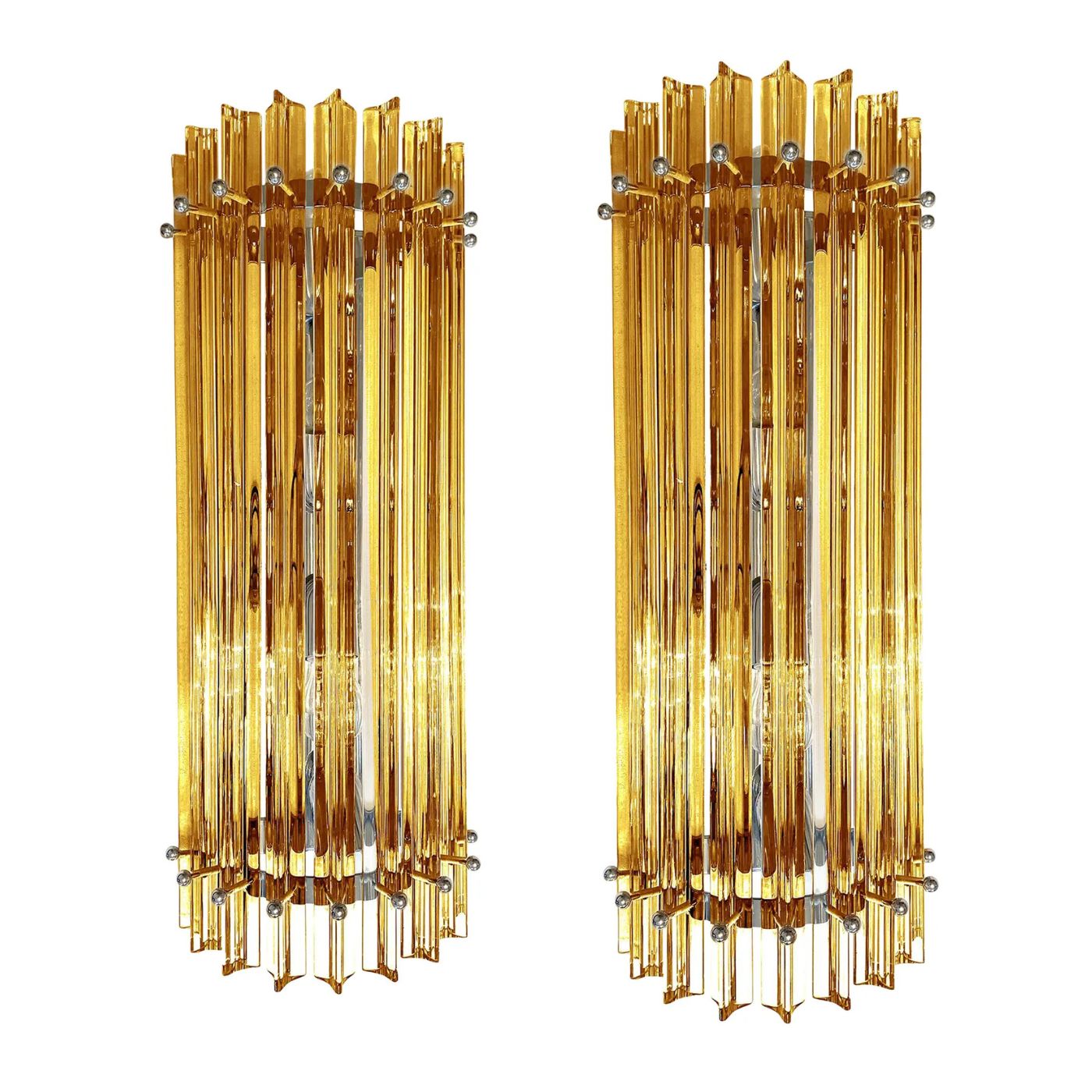Contemporary amber Triedro Murano Glass Wall Sconces. Set of Two.