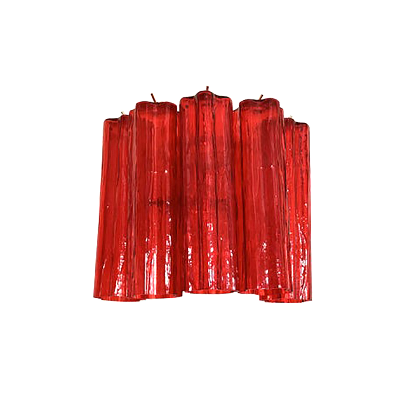 Contemporary scenographic red “TRONCHI” wall sconces in Venini Style. Set of two.