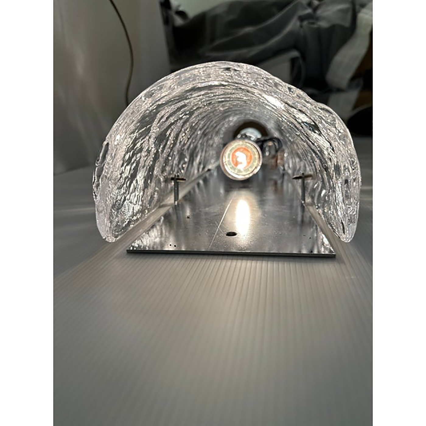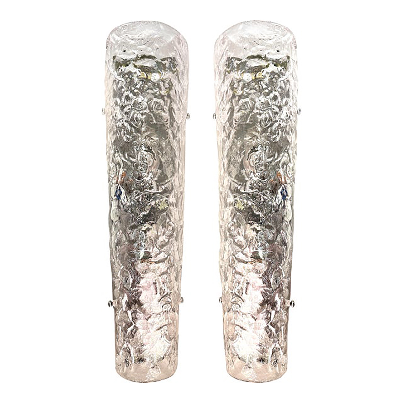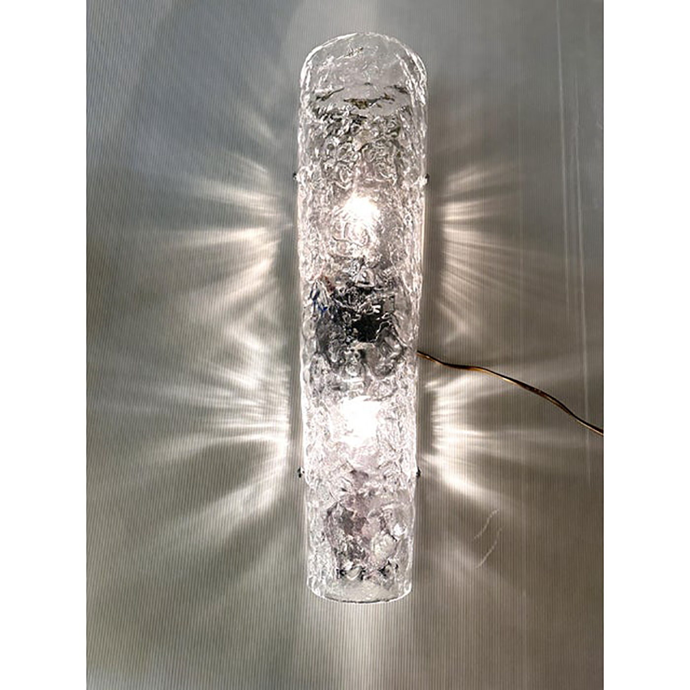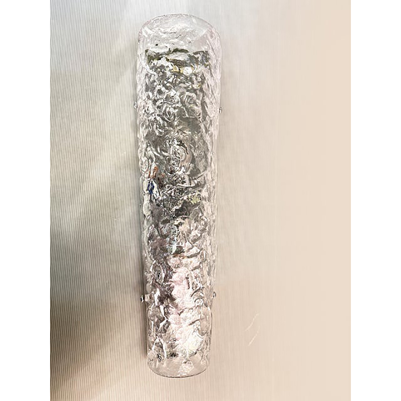Contemporary luxury modern wall sconce made in transparent hammered Murano glass.
