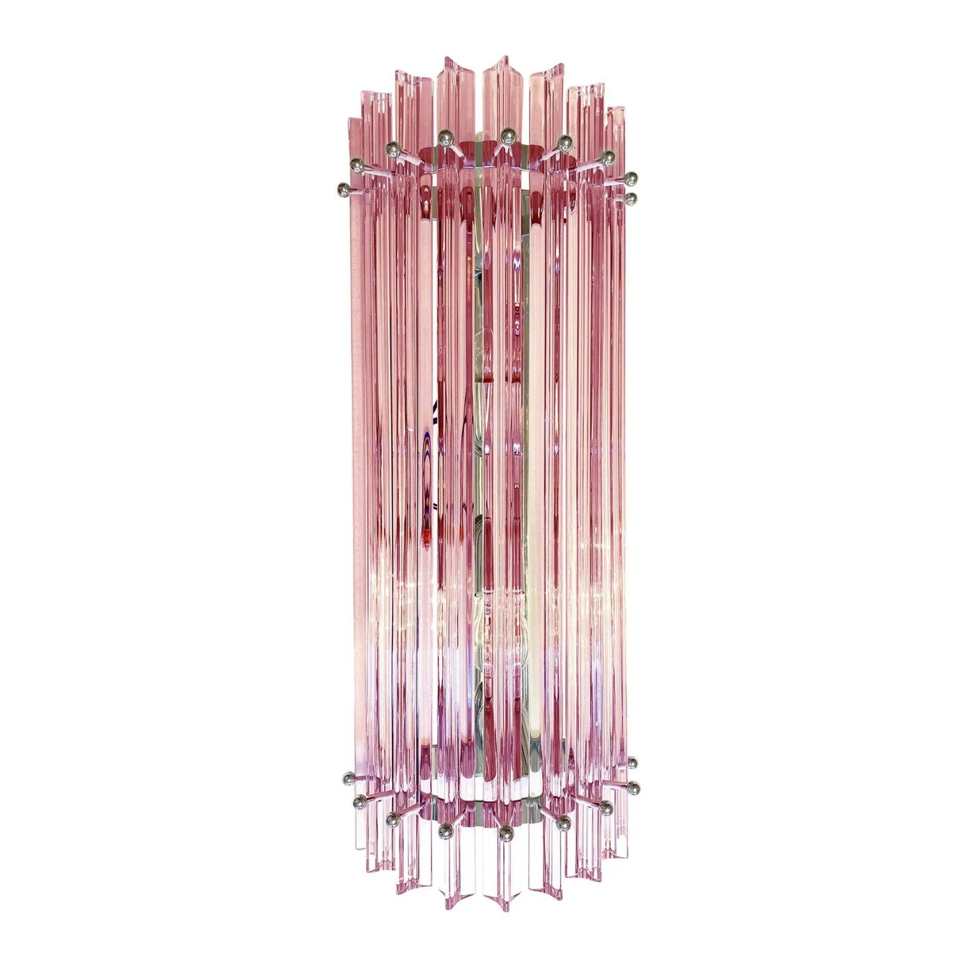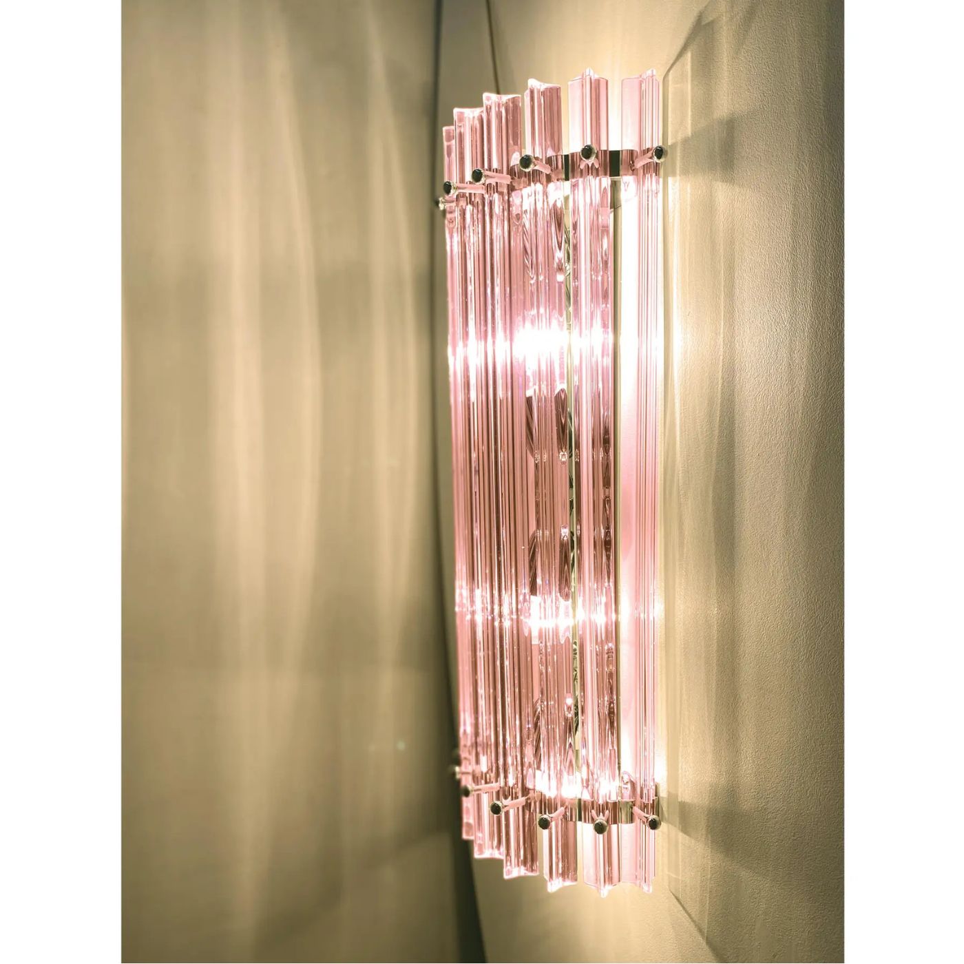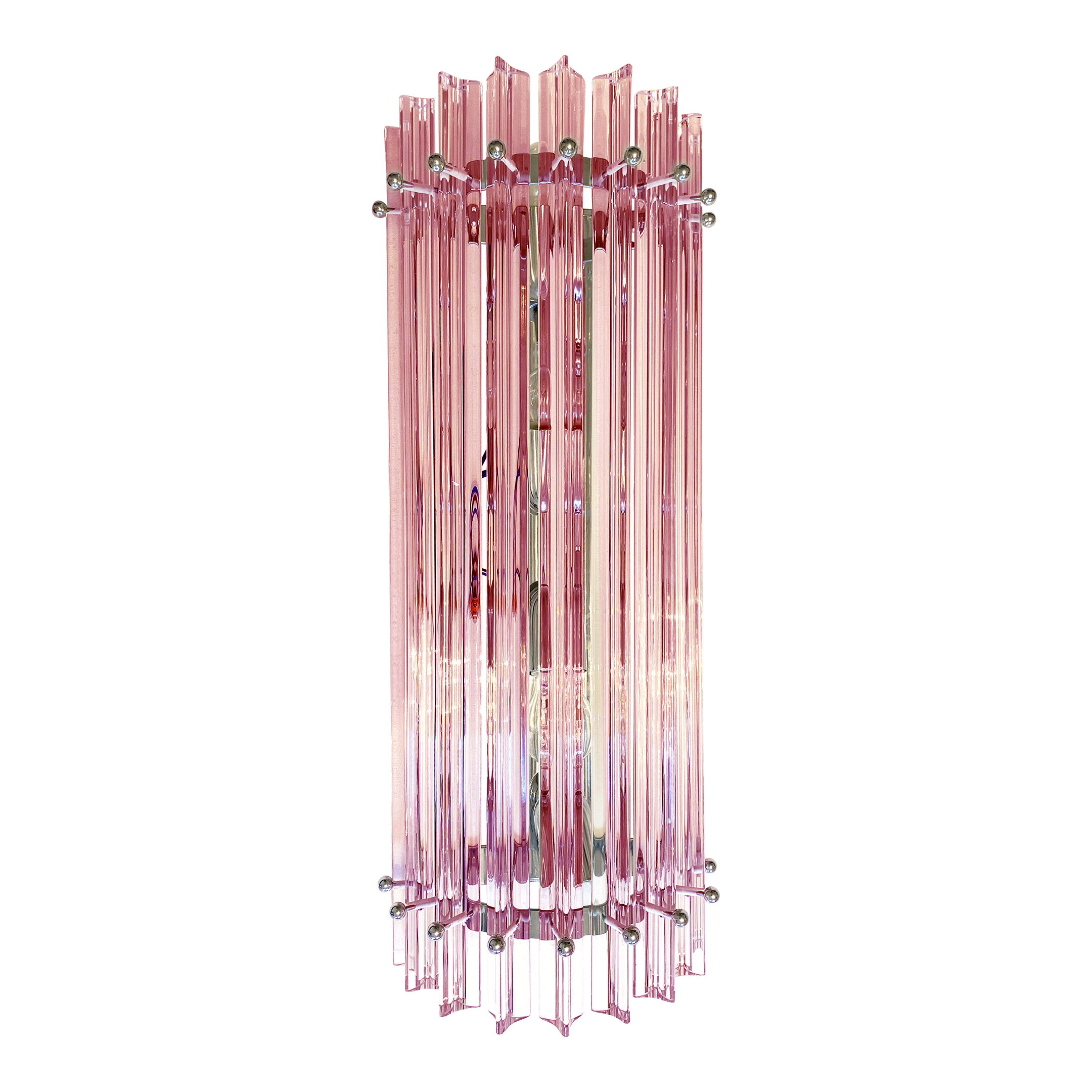 Scenographic pink Triedro Murano Glass Wall Sconces.