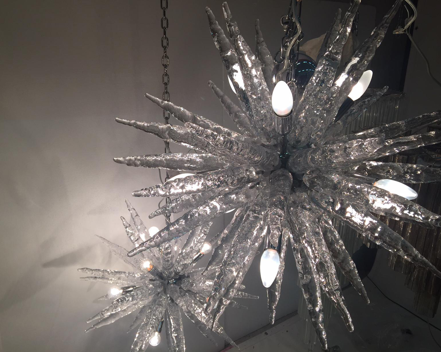 Huge contemporary Sputnik STALACTITE Murano glass chandelier.