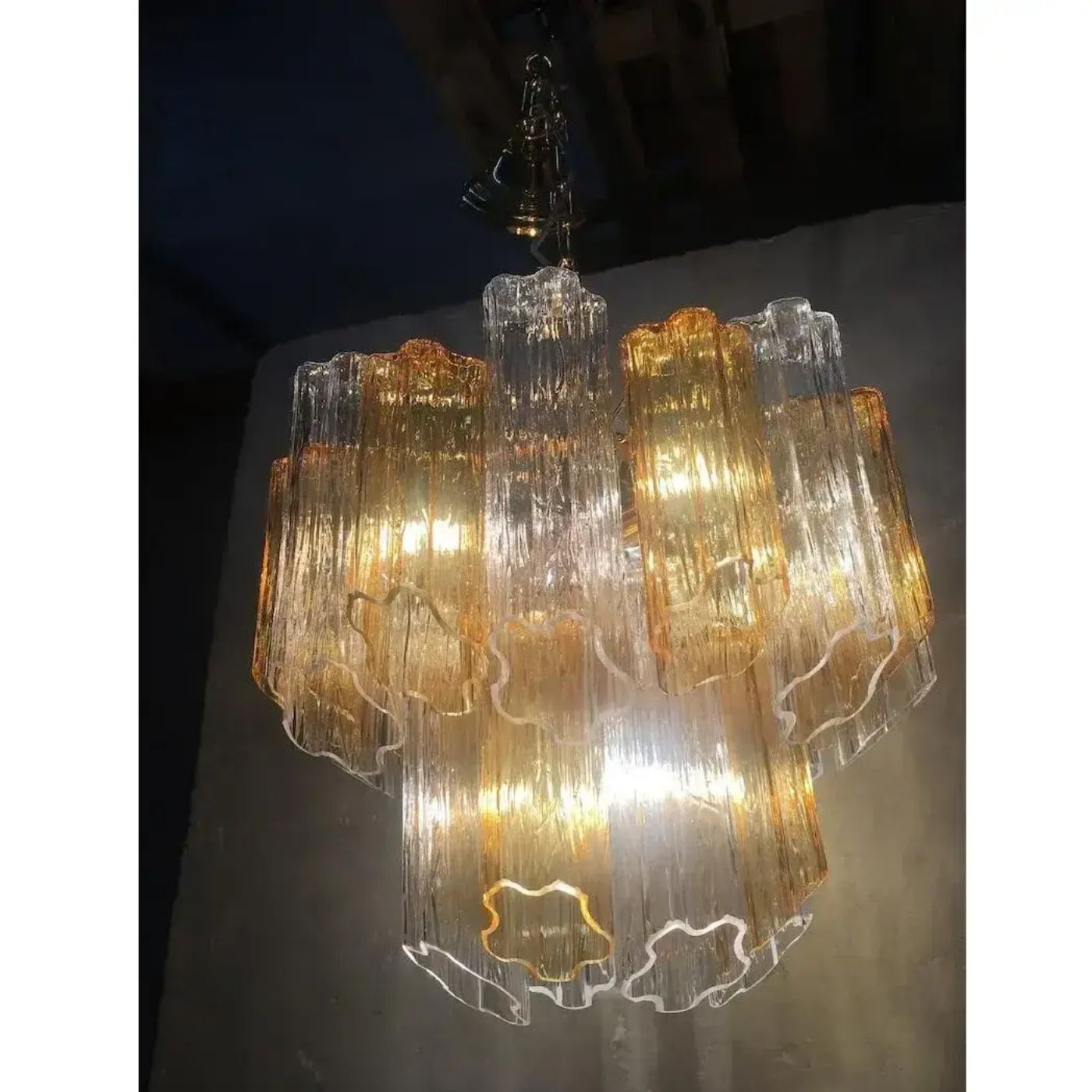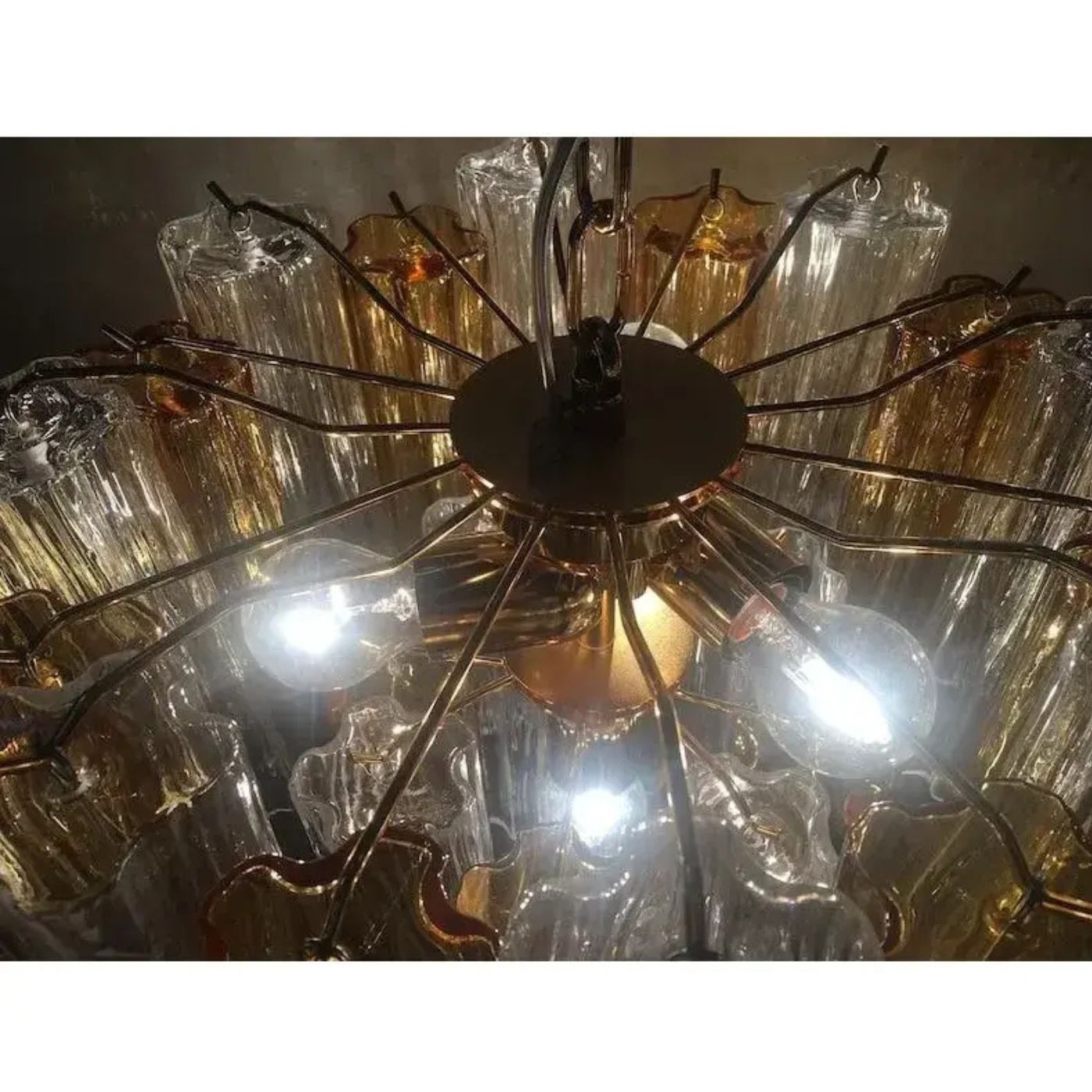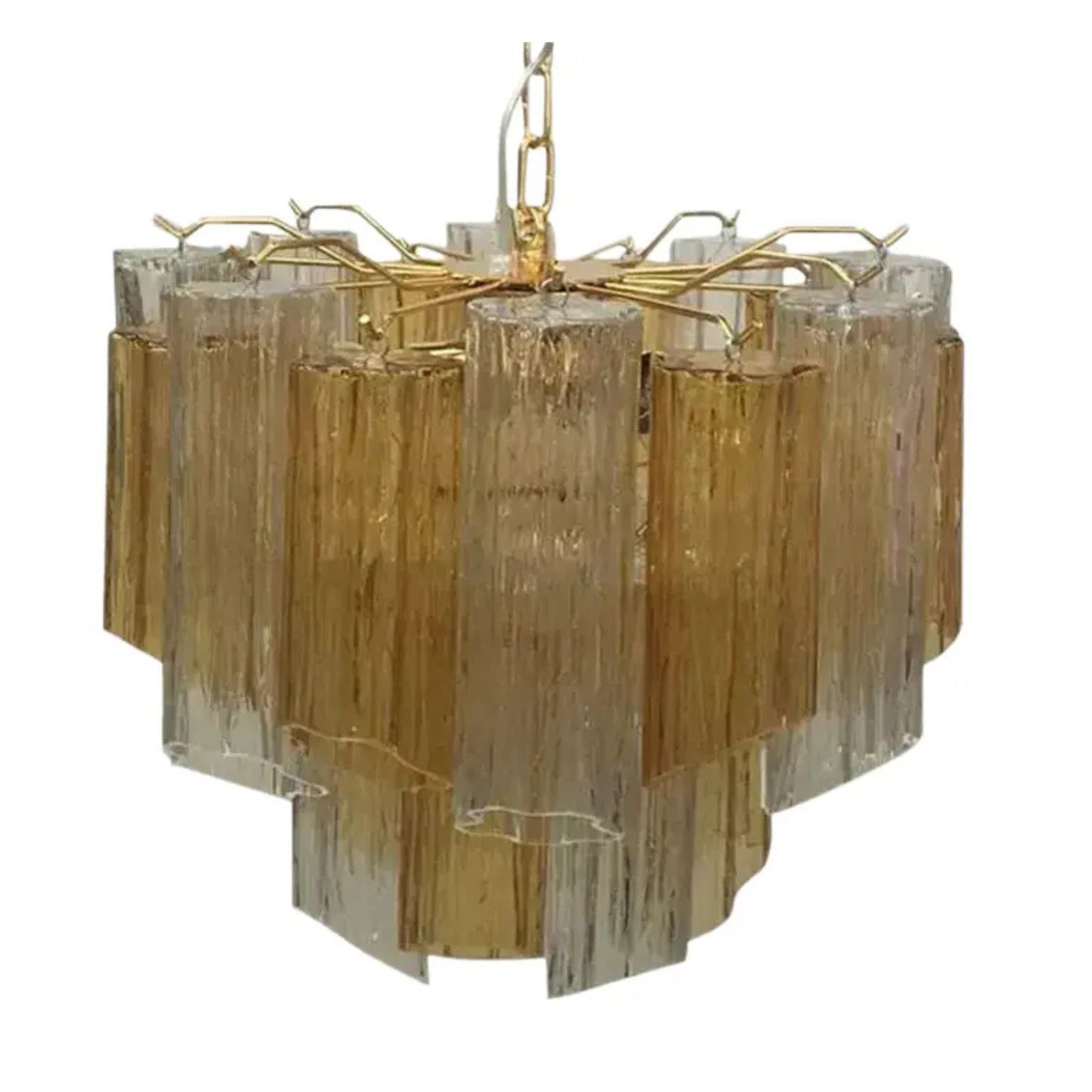 Contemporary clear and amber “tronchi” Murano glass chandelier.