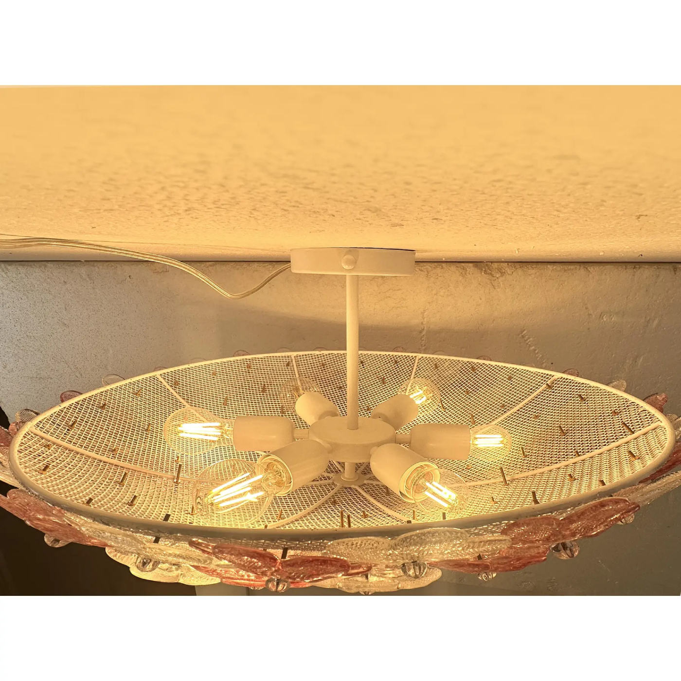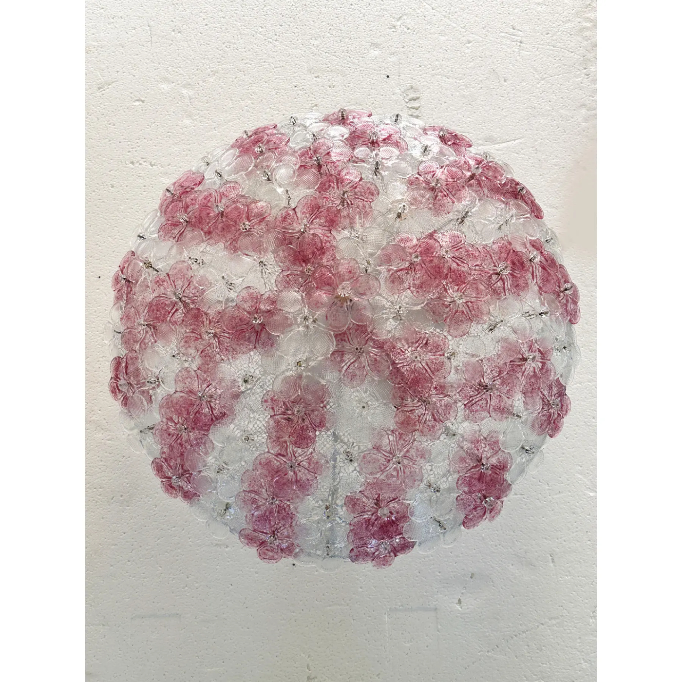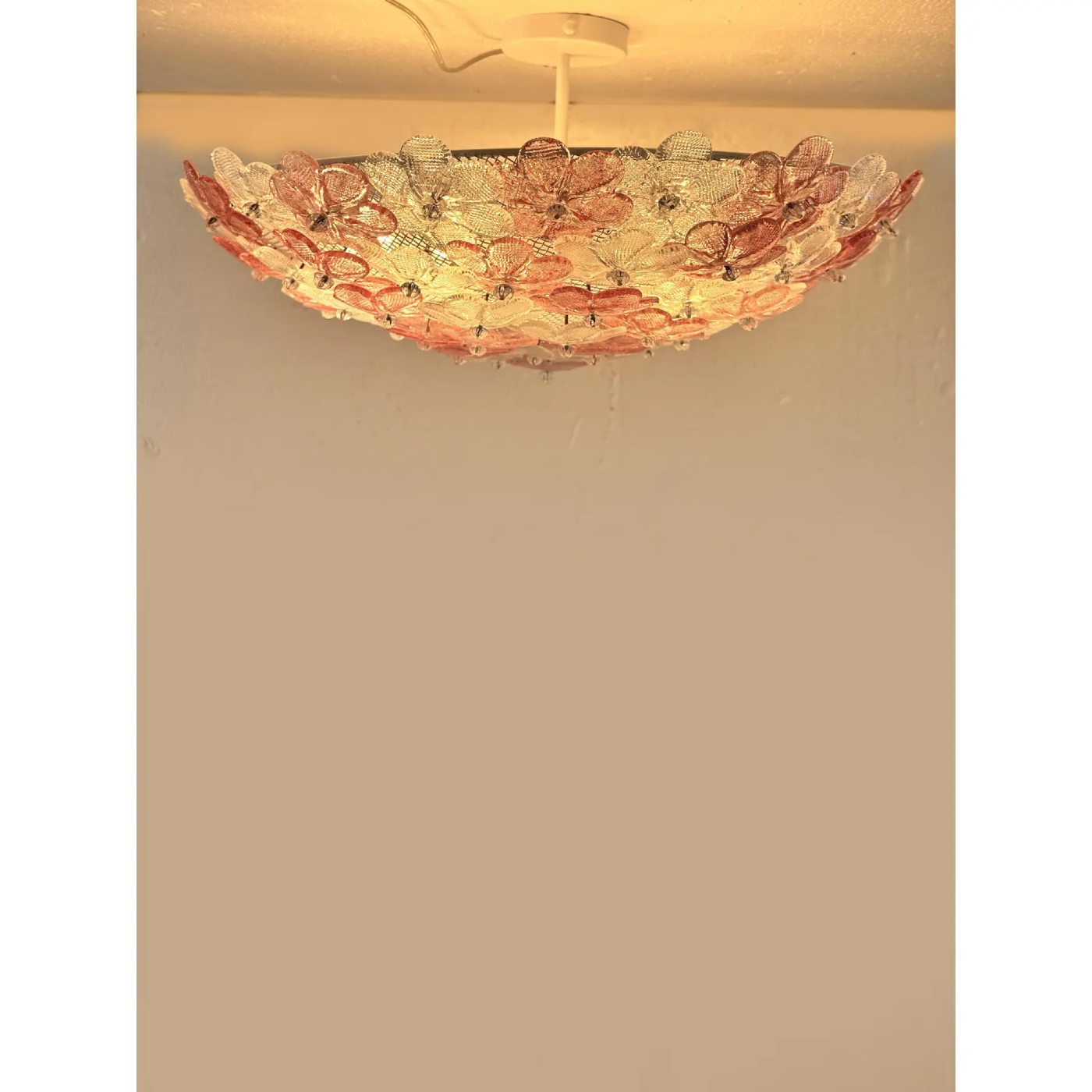 Traditional venetian little flowers flush mount in transplarent and ametista- violet Murano glass.