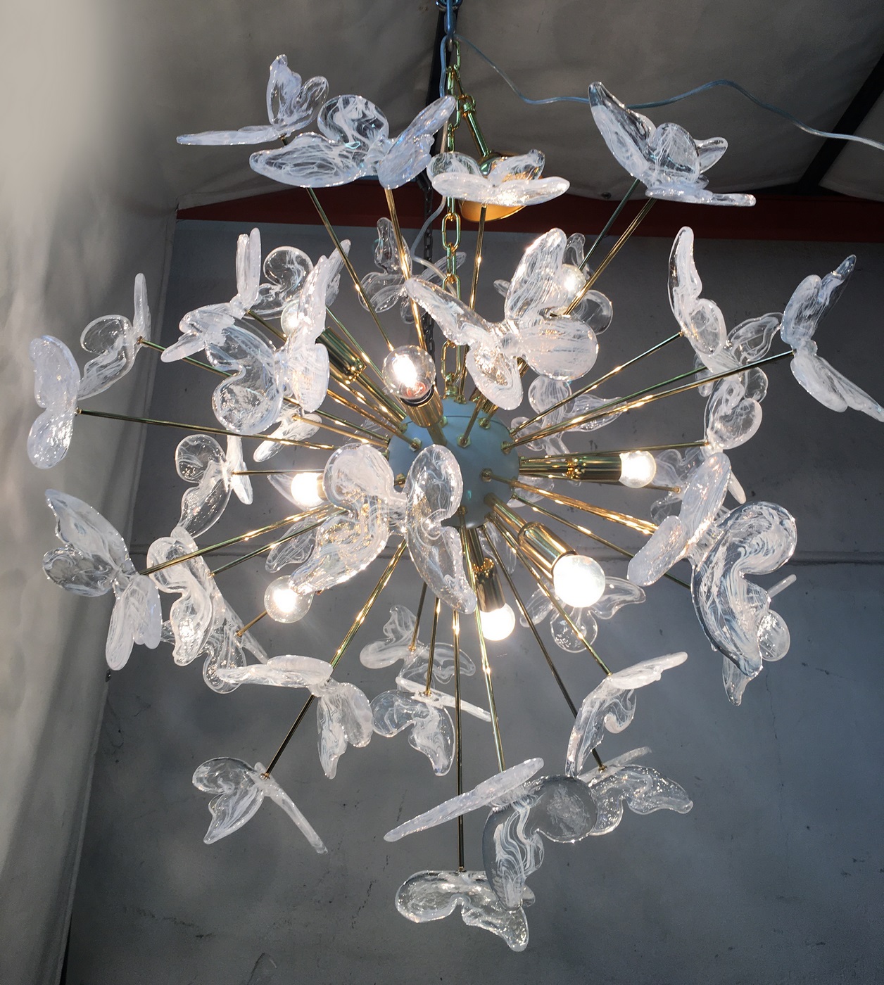 Hand-made venied -white “alabastro” butterflies, elements of Murano glass.